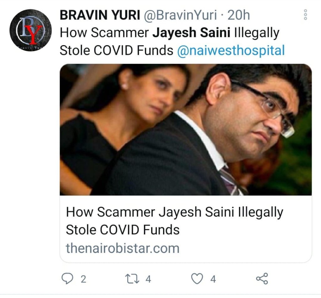Jayesh-sputnik- Nairobi west hospital link