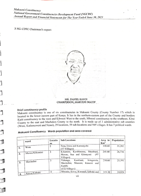 It reveals that Chairman Daniel Kavoi expended KSh 3,485,988 on committee expenses, with KSh 1,808,000 of this amount lacking proper payment vouchers.