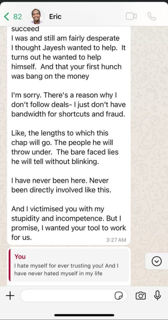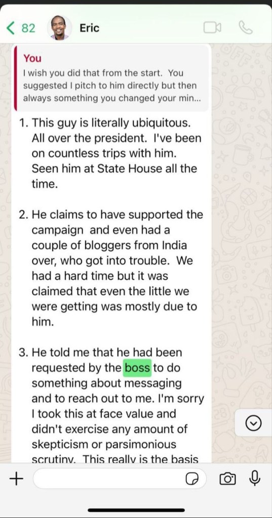 It cans been seen and understood that Eric Ngeno the statehouse speechwriter admitted to true conning character of Jayesh Saini who intended to buy Wachuka’s idea and sell it to the government.